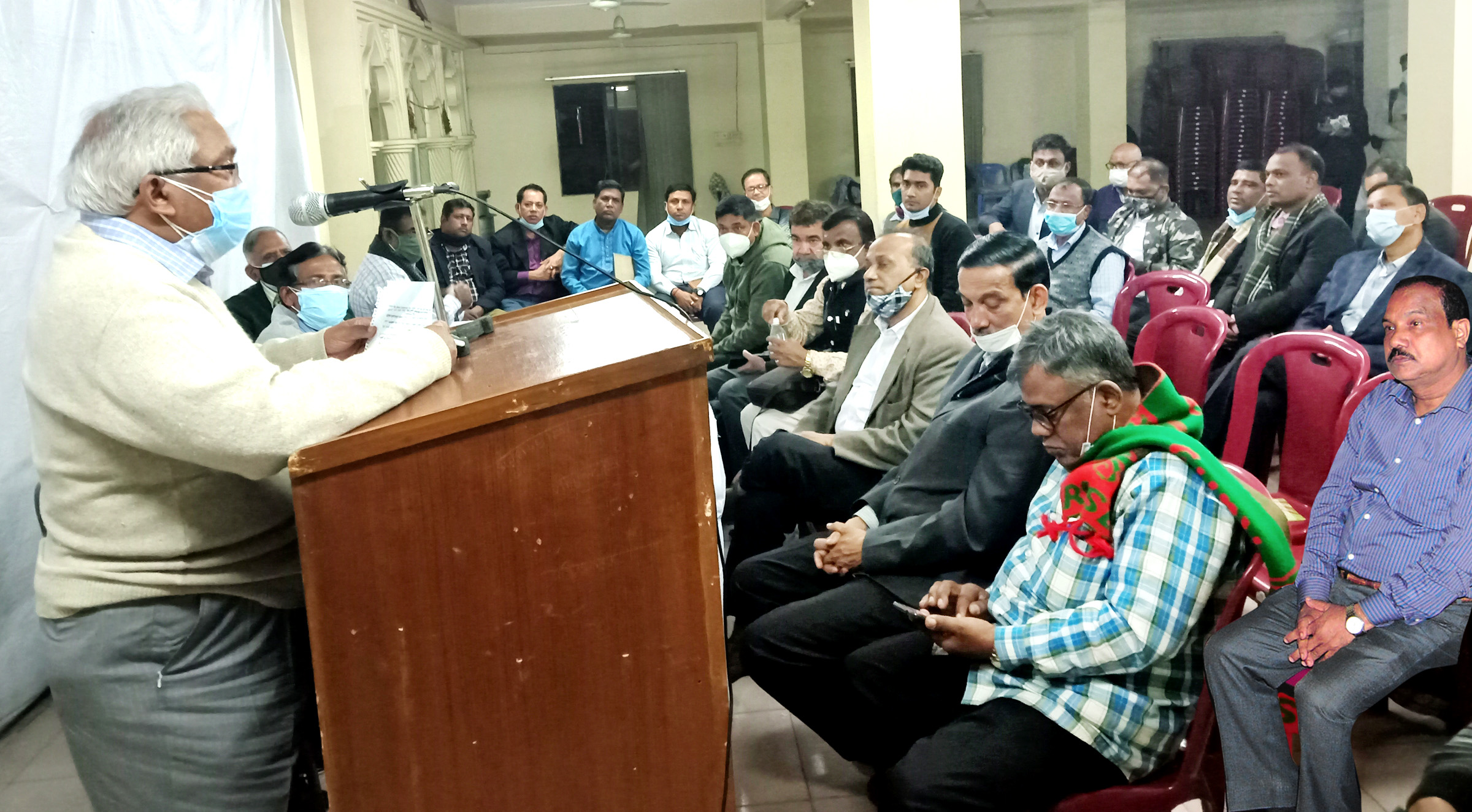 মতবিনিময় সভায় বক্তব্য রাখছেন বাংলাদেশ হিন্দু বৌদ্ধ খ্রিস্টান ঐক্য পরিষদ কেন্দ্রীয় কমিটির সাধারণ সম্পাদক এডভোকেট রানা দাশগুপ্ত।