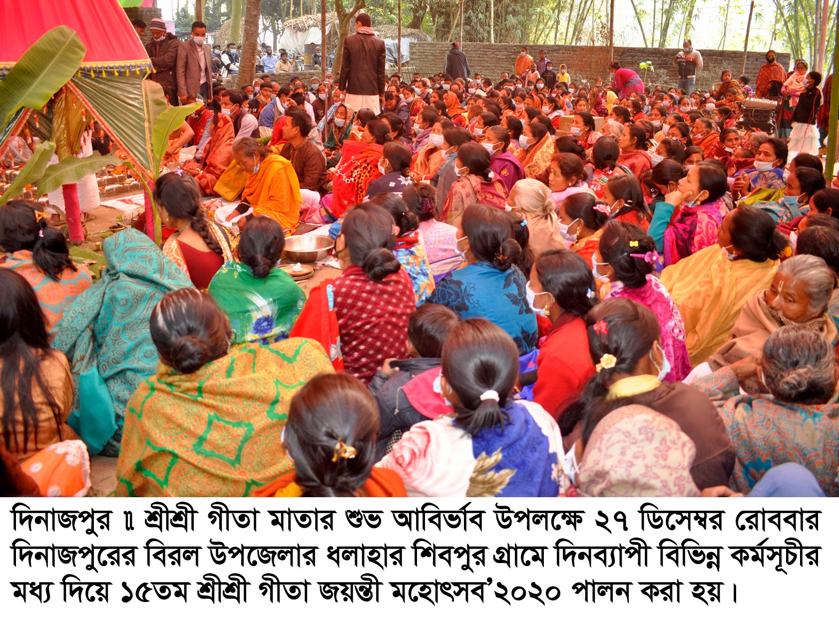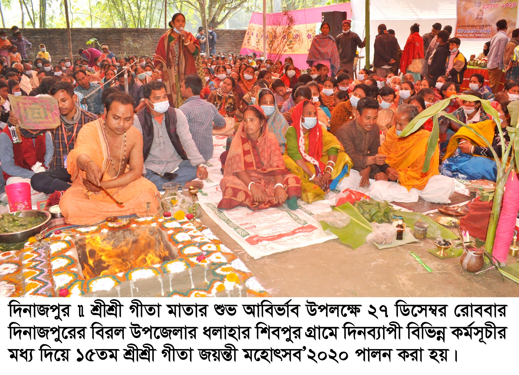 রাজু বিশ্বাস, দিনাজপুর প্রতিনিধি \ শ্রীশ্রী গীতা মাতার শুভ আবিভার্ব উপলক্ষে শ্রীশ্রী রাধাগোবিন্দ সেবাশ্রমের ভক্তবৃন্দের আয়োজনে এবং শ্রীশ্রী রাধাগোবিন্দ সেবাশ্রমের যুব কমিটির সহযোগিতায় ২৭ ডিসেম্বর রোববার দিনাজপুরের বিরল উপজেলার শিবপুর গ্রামে দিনব্যাপী বিভিন্ন কর্মসূচীর মধ্য দিয়ে ১৫তম শ্রীশ্রী গীতা জয়ন্তী মহোৎসব—২০২০ পালন করা হয়েছে।